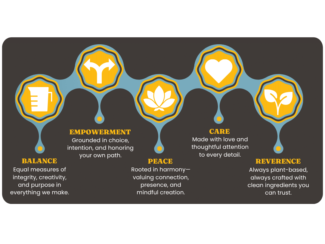Guided by transparency and intention, we craft products with honesty, with creativity, with heart — and we honor authenticity, purpose, and connection through every creation.